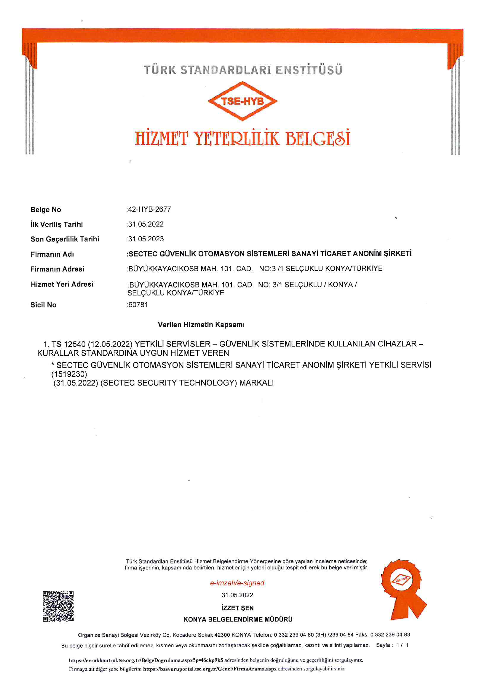 Hizmet Yeterlilik Belgesi